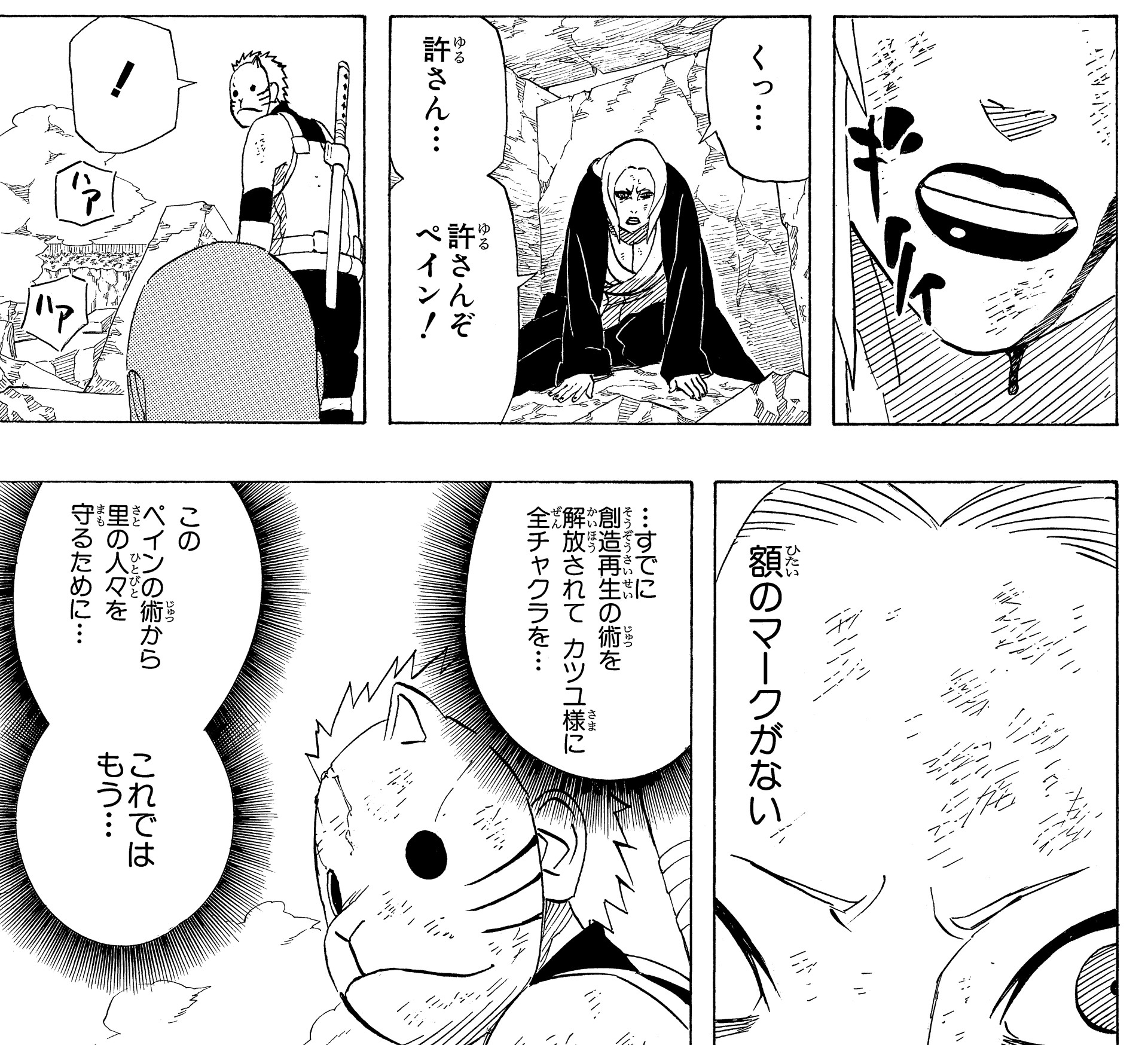 Déterminée, Tsunade surmonta sa phobie du sang et utilisa la technique interdite « Création et Renouveau » pour régénérer ses blessures !