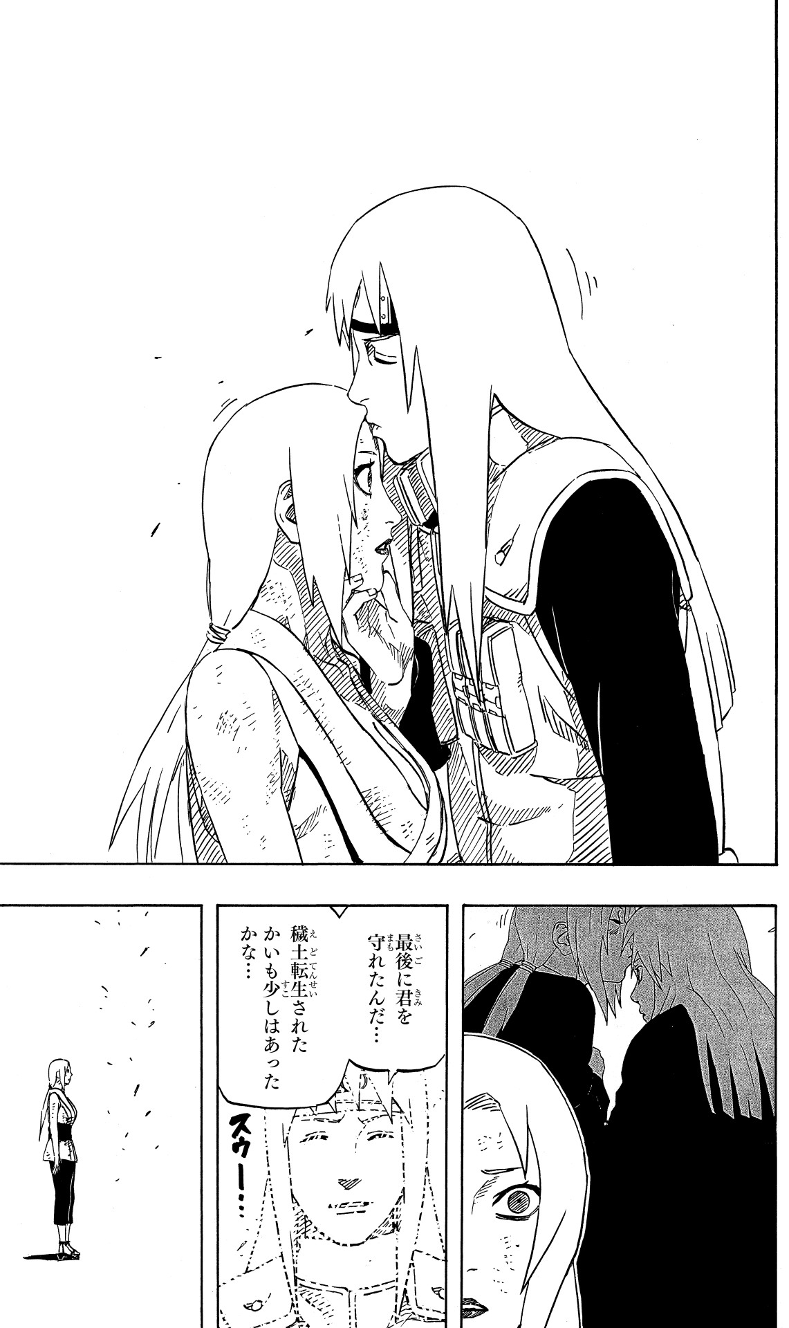 Tsunade agissait avec fermeté devant les gens du village, mais au moment de la mort de Jiraya, elle ne put contenir ses émotions...