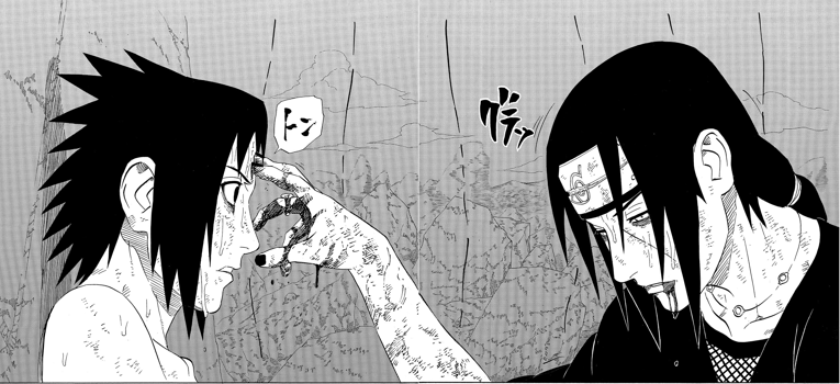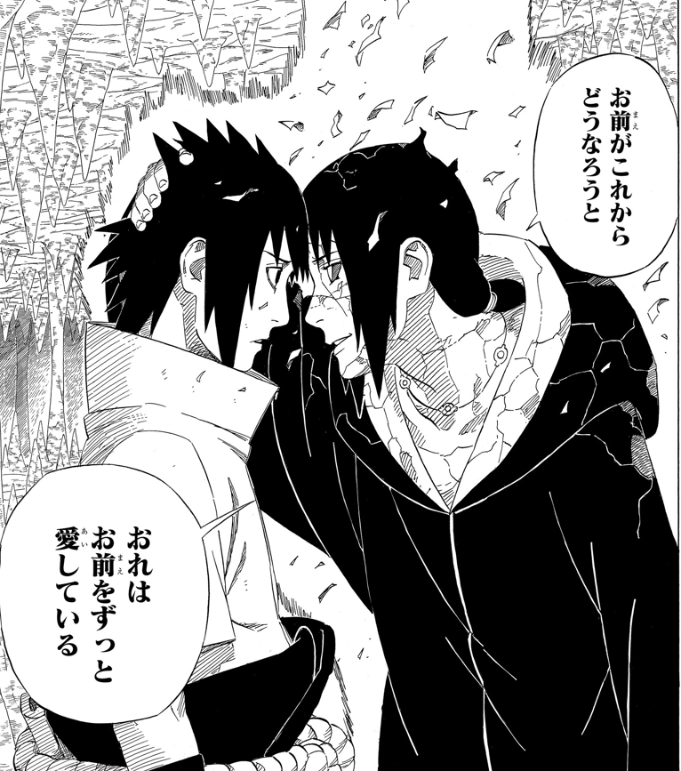 Ryuji:Sasuke non si sarebbe mai aspettato di vedere di nuovo Itachi nella terra dei vivi, e il loro incontro finisce con lui che prova di nuovo il dolore di aver perso suo fratello. Penso che guardare quella che è essenzialmente la morte di Itachi per la seconda volta sia un punto di svolta per Sasuke, e risulta in lui che si chieda cosa dovrebbe fare andando avanti—è lì che si trova alla fine dell'ultima commedia. Quando continuerà a incontrare il precedente Hokage e decide una linea d'azione, non si sposterà esattamente in una direzione positiva... in realtà un po paura di recitare la cosa.