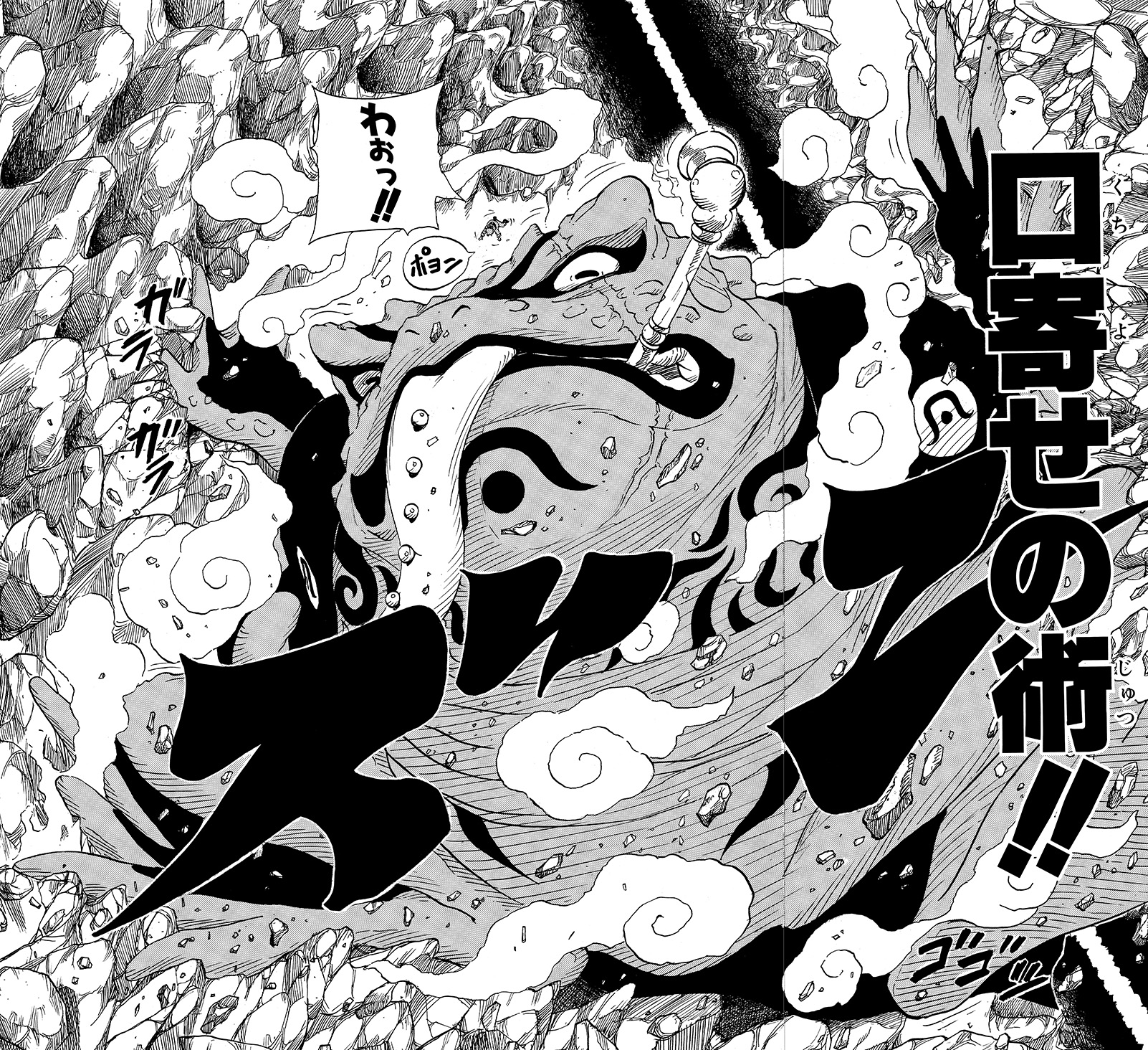 Oltre alla tecnica per camminare sull'acqua, Jiraiya insegna al suo nuovo discepolo anche il modo di attingere al Chakra della volpe a nove code e la cosiddetta "Tecnica dell'evocazione".