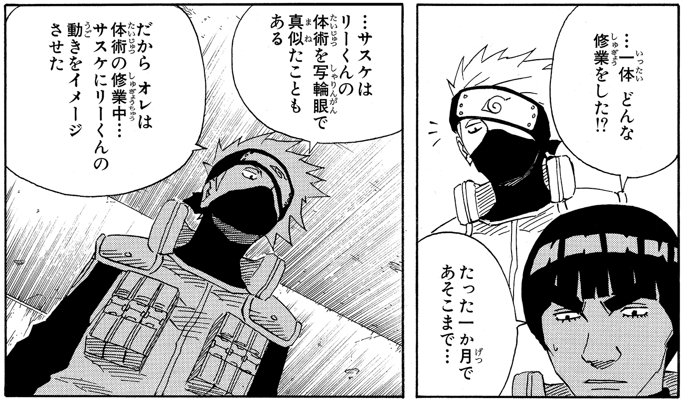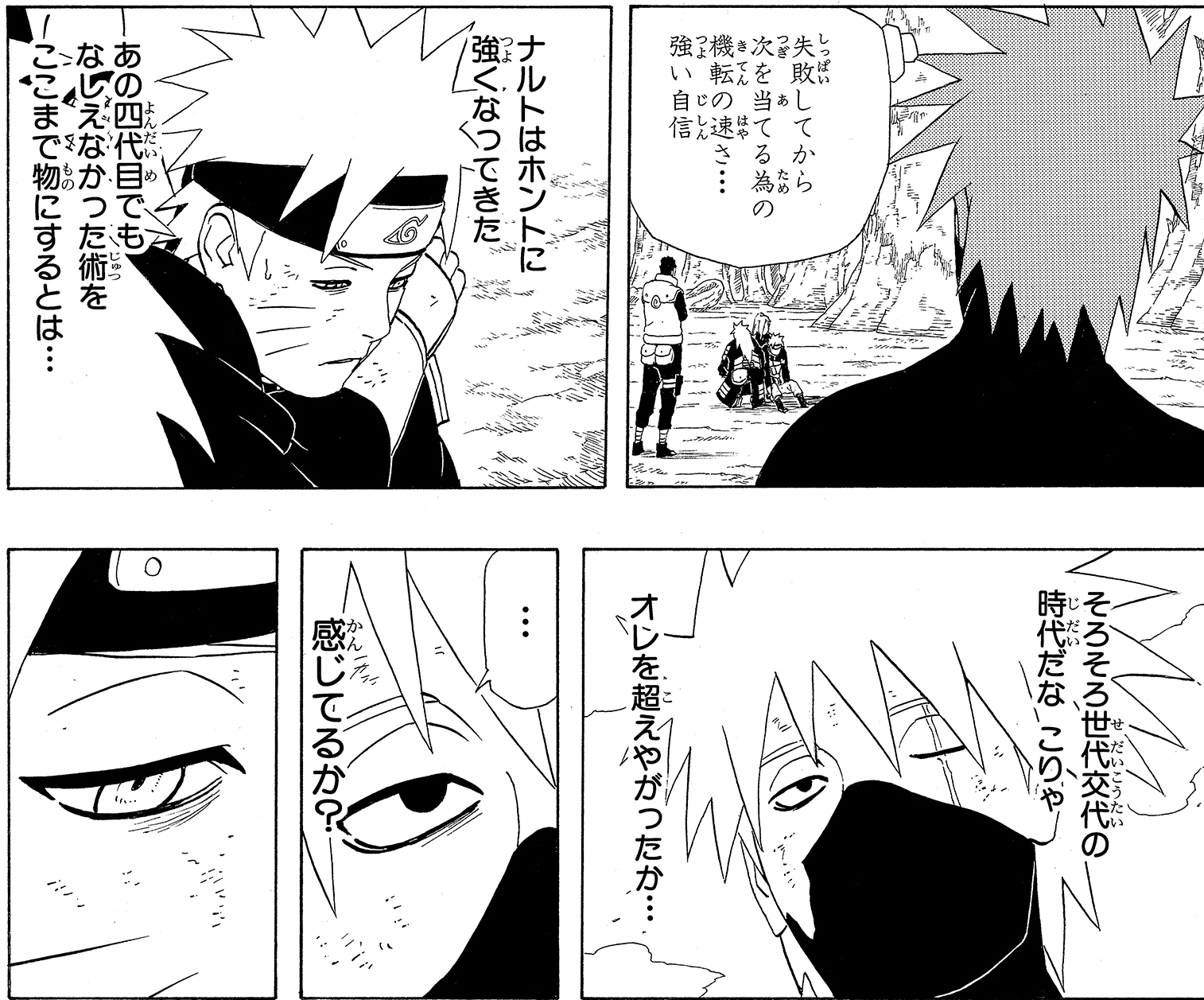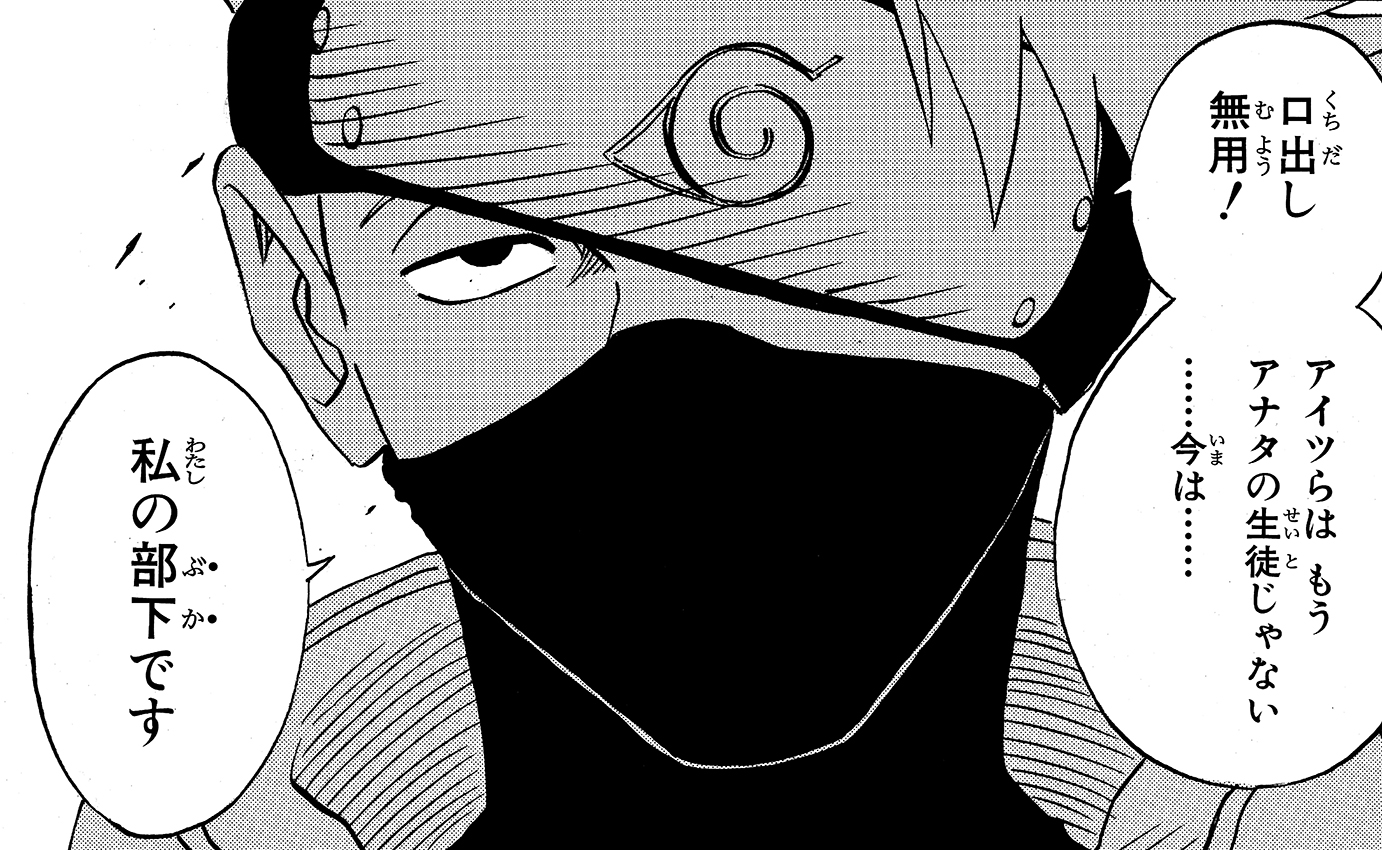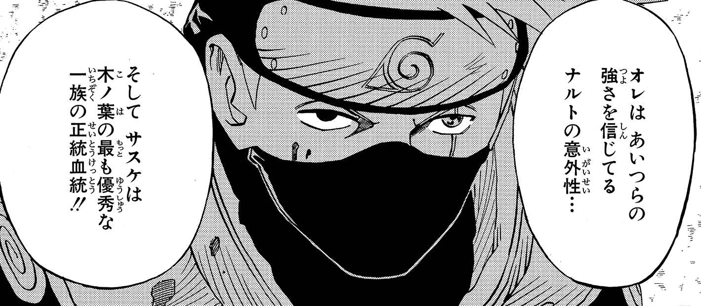 Tra sé e sé, Kakashi si rivolge prima a Naruto e poi anche al suo altro allievo.