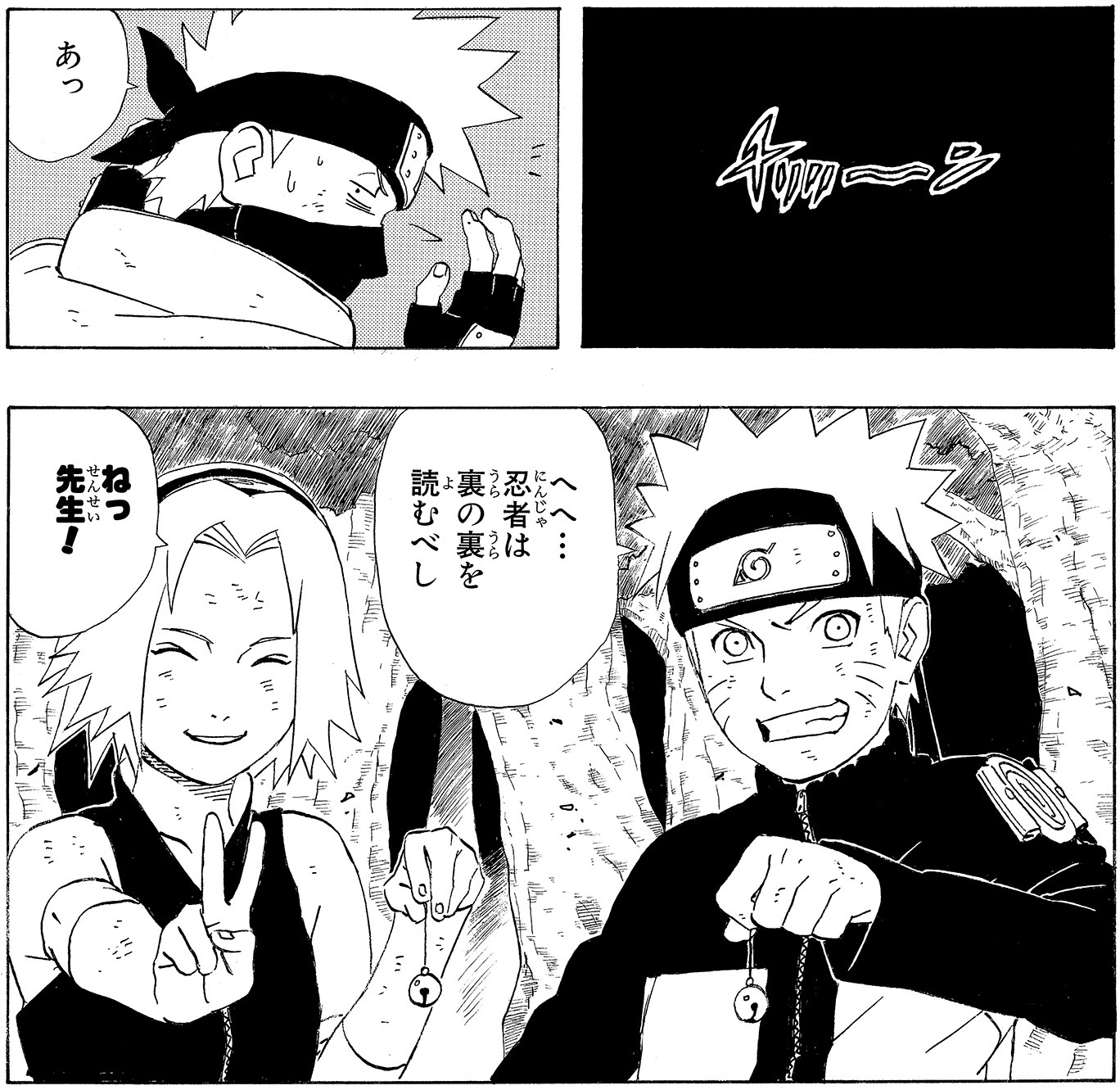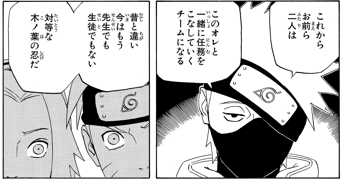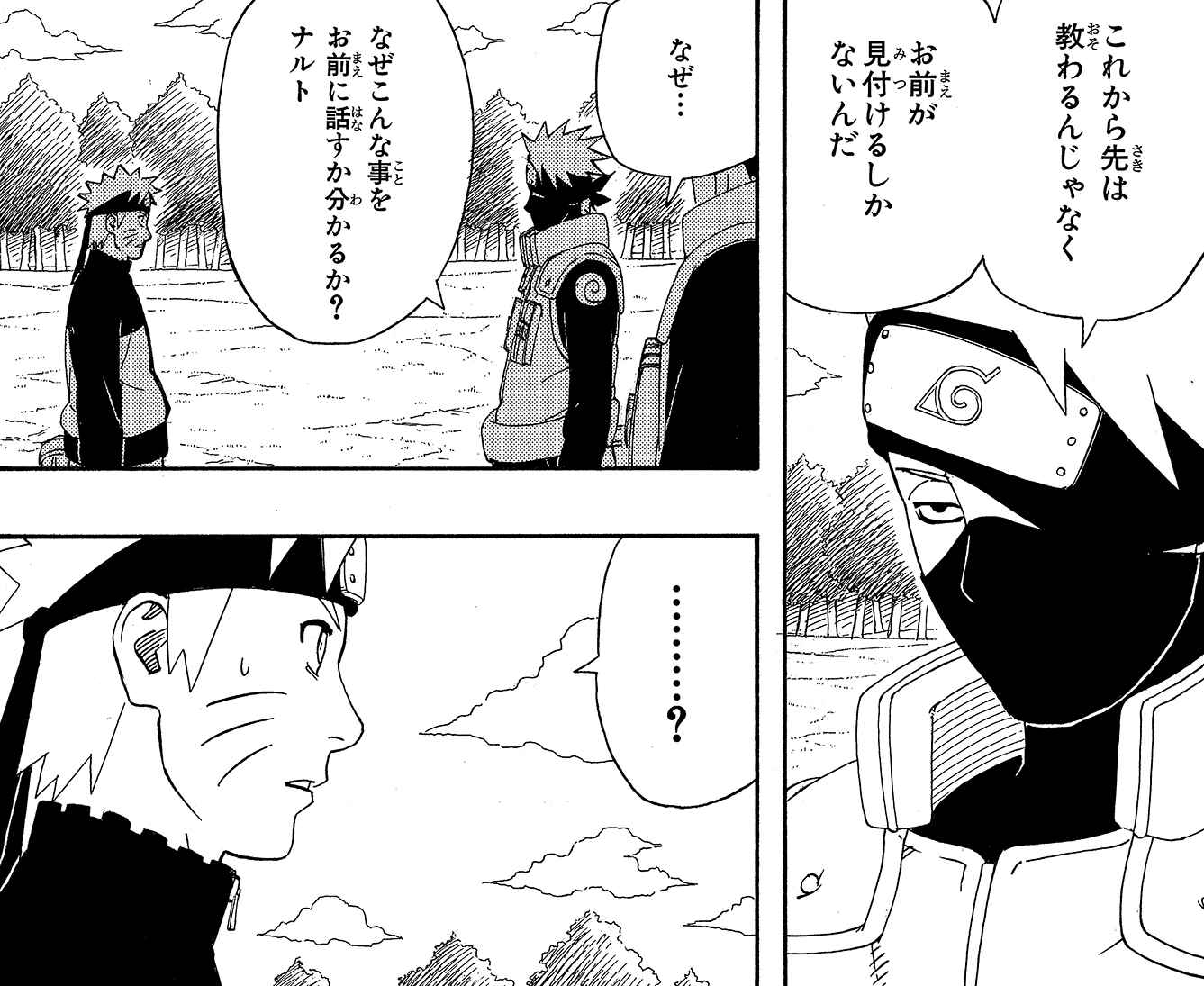 Tra sé e sé, Kakashi si rivolge prima a Naruto e poi anche al suo altro allievo.