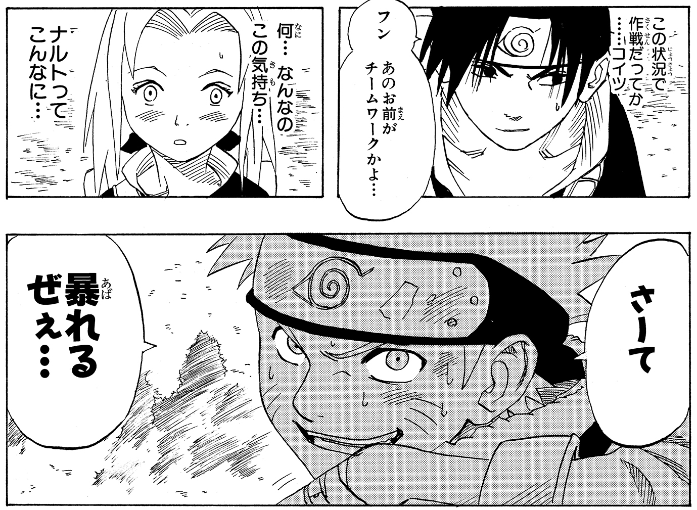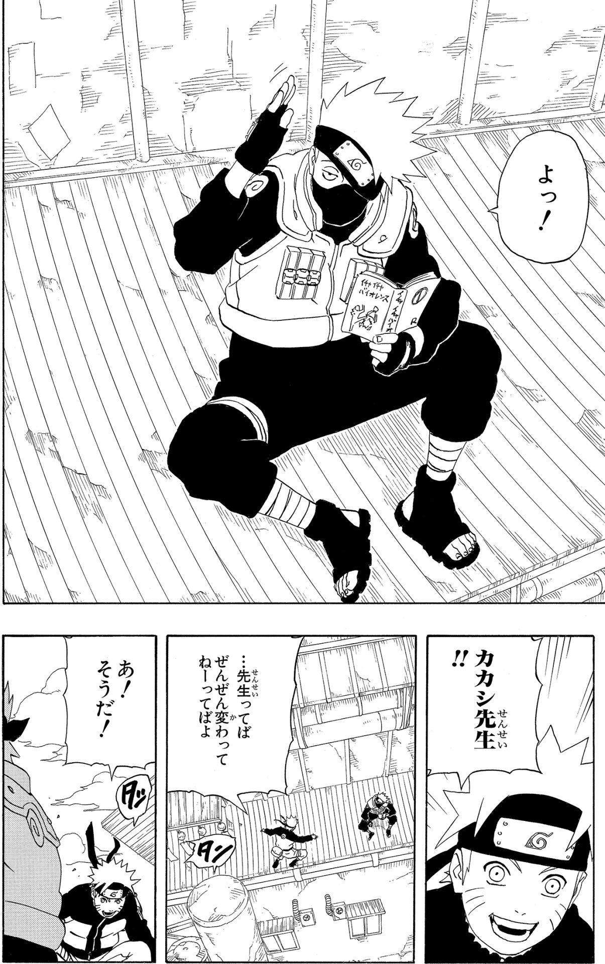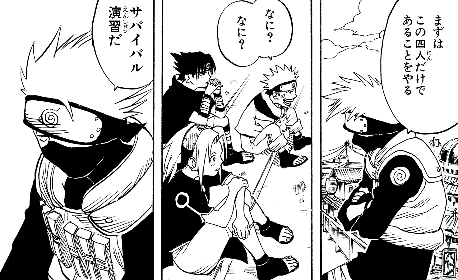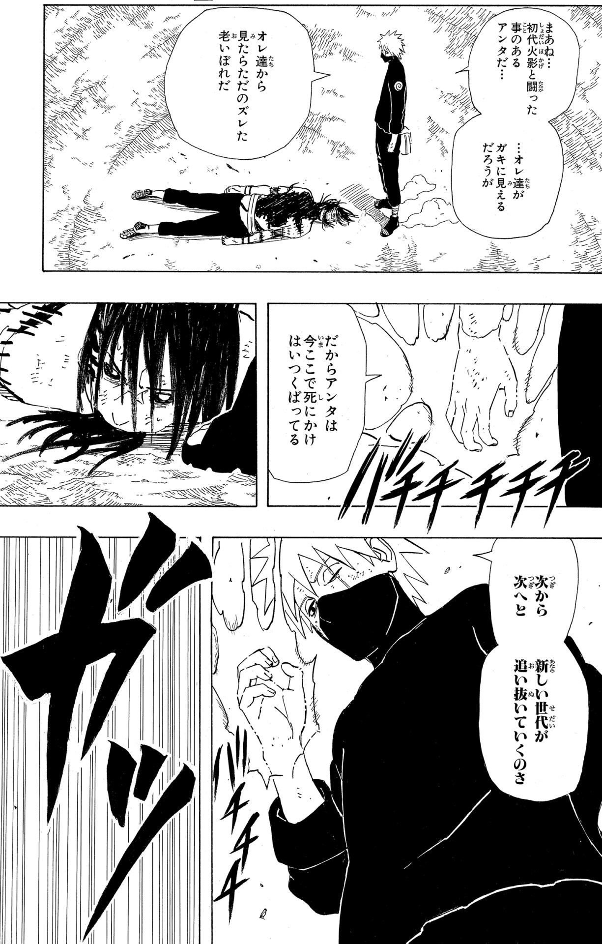 Tra sé e sé, Kakashi si rivolge prima a Naruto e poi anche al suo altro allievo.