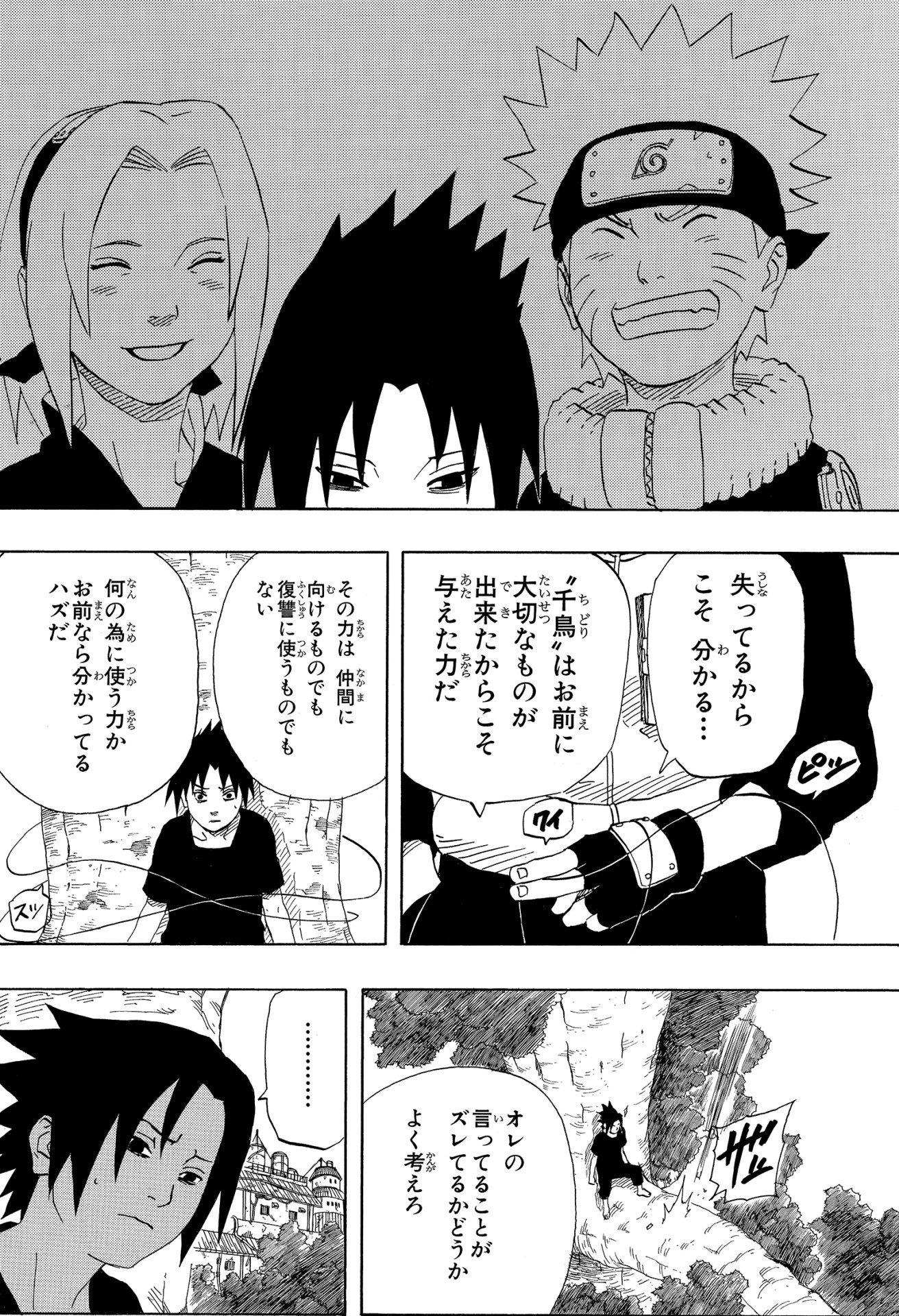 Mentre Kakashi è in convalescenza, Naruto e Sakura riescono a trovare Sasuke, ma non riescono a convincerlo a tornare indietro con loro.