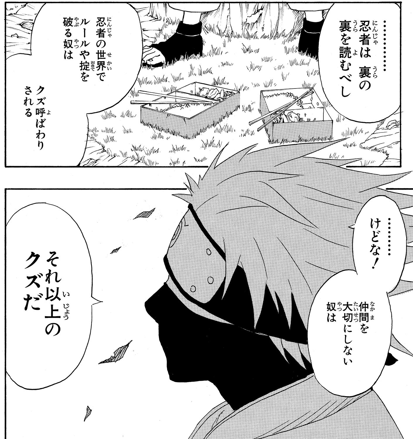 "Nel mondo dei ninja, chi non rispetta le regole e le leggi...