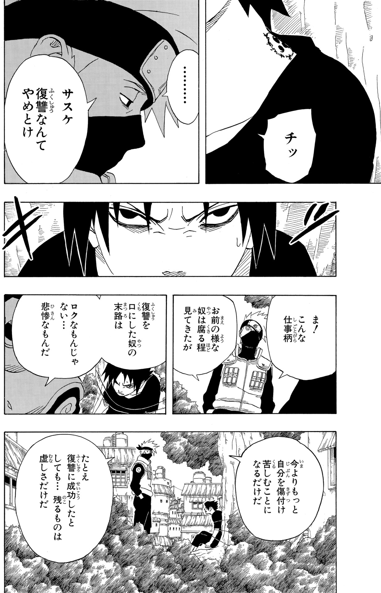 Dopo aver lasciato Naruto con Jiraiya, Kakashi va a cercare Sasuke.