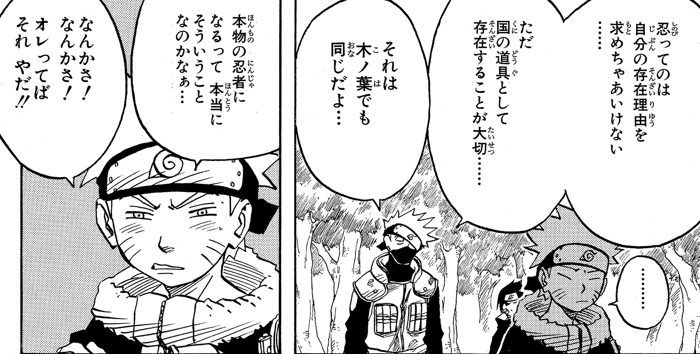 Ma a Naruto manca l'impassibilità tipica dei ninja: pur avendo sconfitto Haku, non riesce ad infliggergli il colpo di grazia.