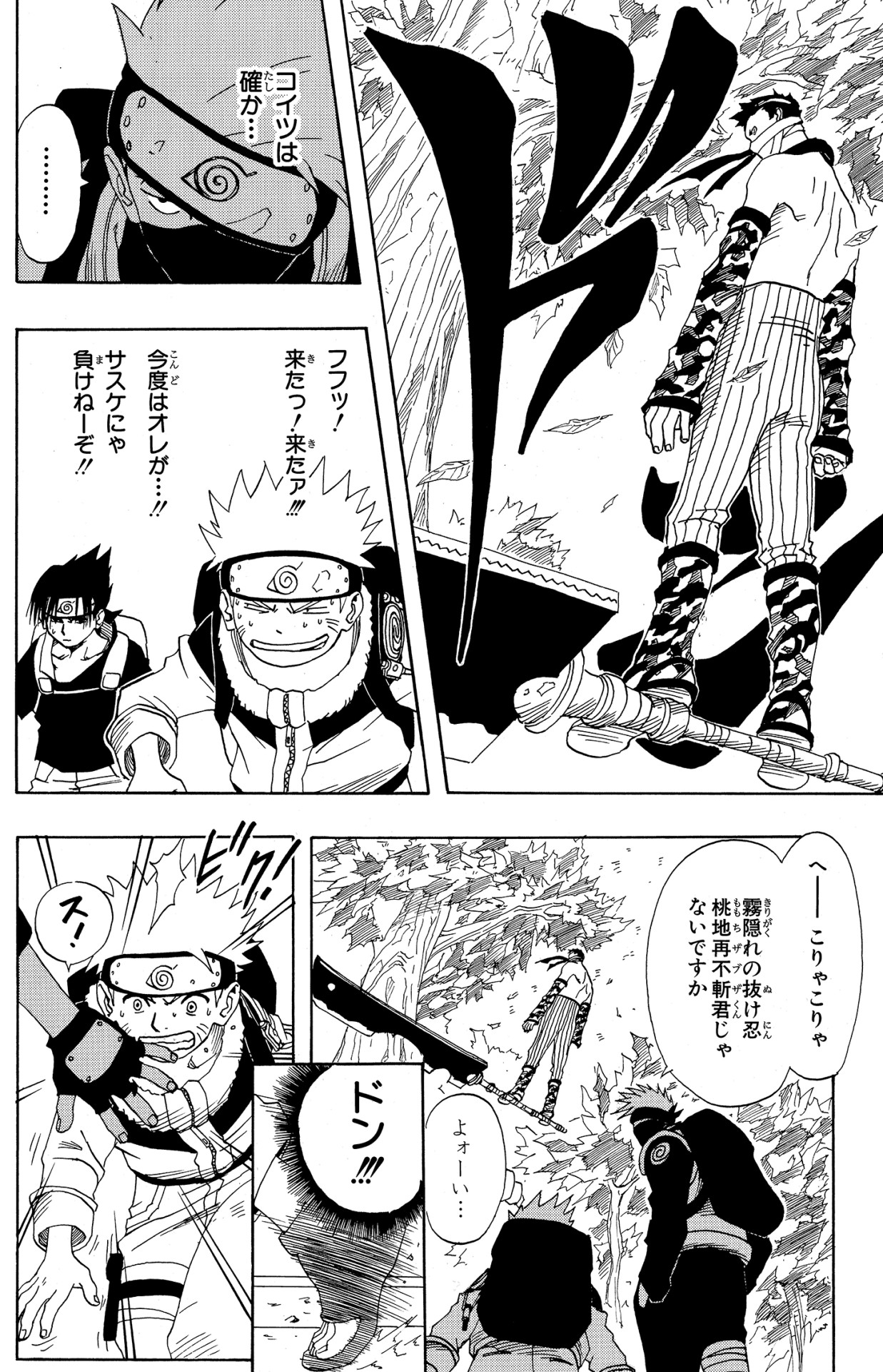 Lì si scontrano con Zabuza Momochi, leggendario ninja del villaggio della nebbia.