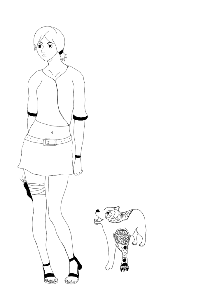 Saki non ha mai conosciuto i suoi genitori ed è stata abbandonata in un orfanotrofio. Ha trovato un cane ferito a 13 anni nella foresta prima di aggiungergli una tecnologia modificata e di curarlo fino a farlo tornare in salute prima di renderlo per metà cane e per metà cyborg. Ben presto è diventato il suo unico amico e compagno.