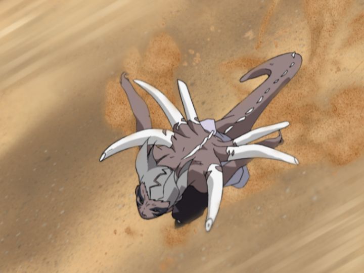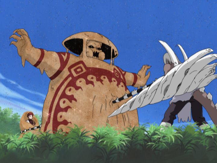君麻呂の執念が我愛羅の力を上回り、その矛が我愛羅を貫こうとした瞬間…