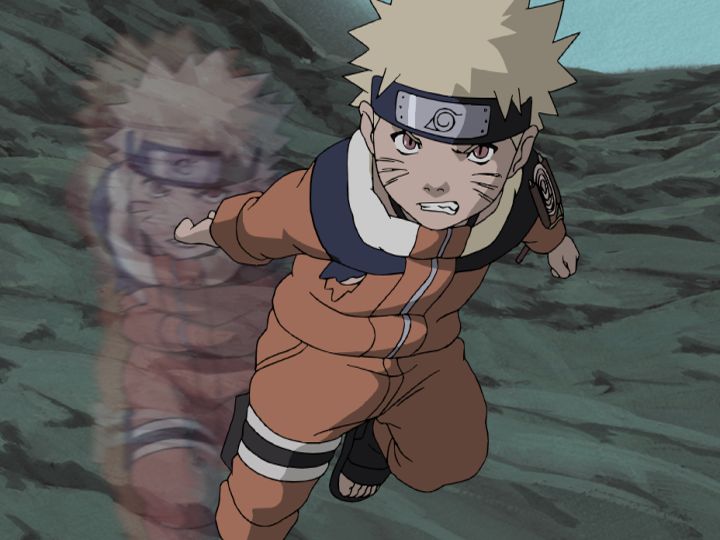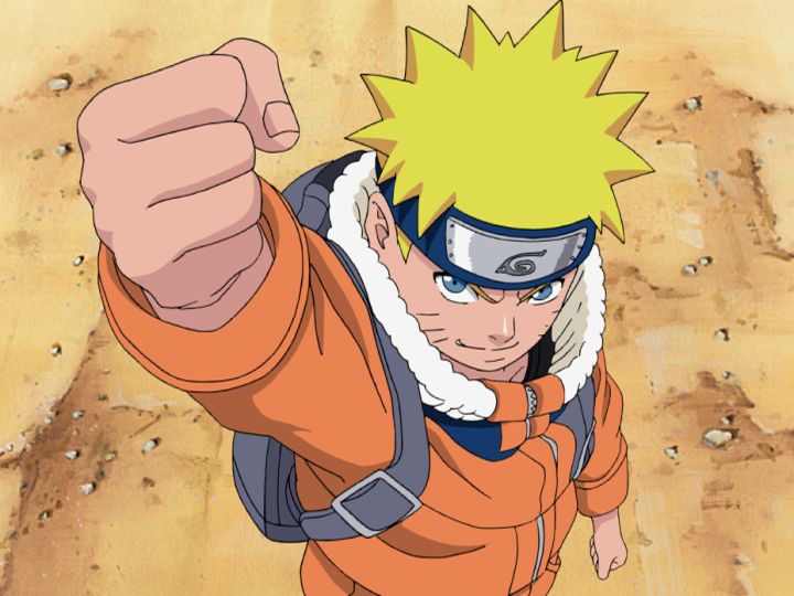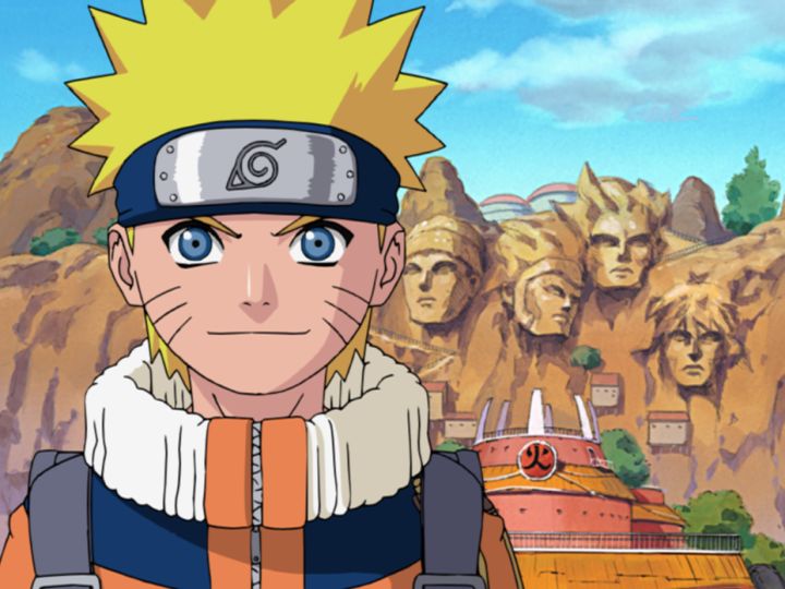 火影岩に向かって拳を掲げ、強くなることを誓って旅立ったナルト!!