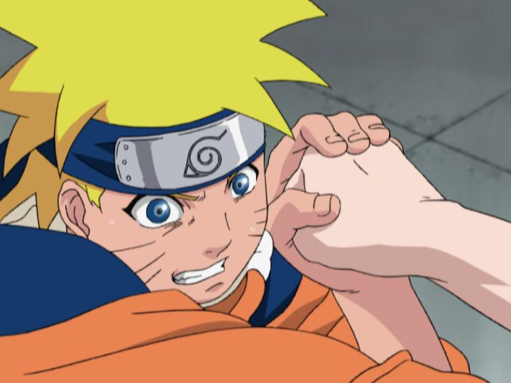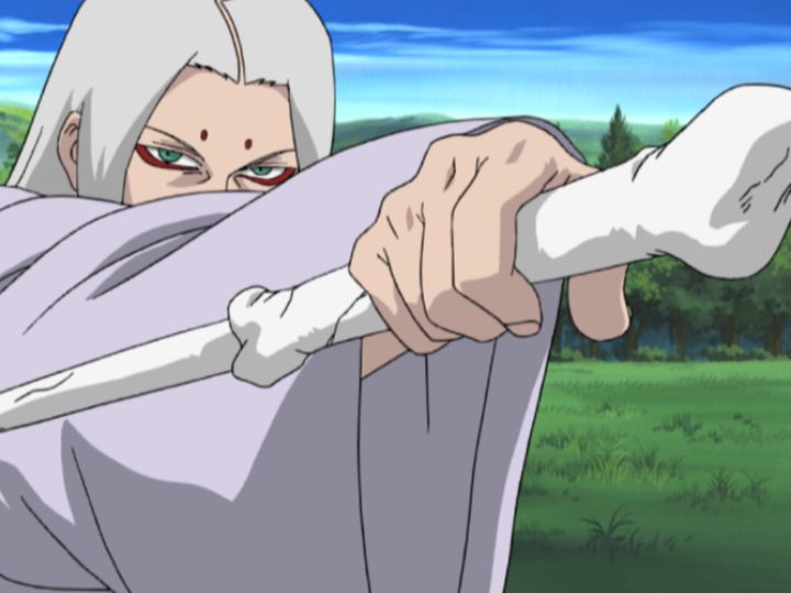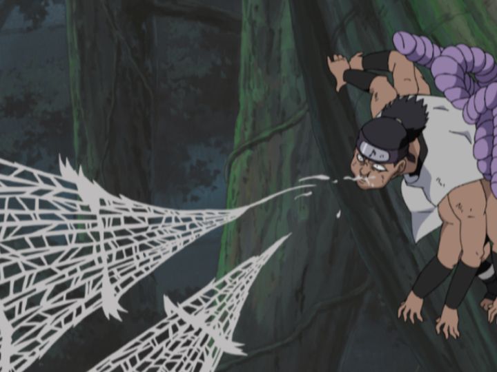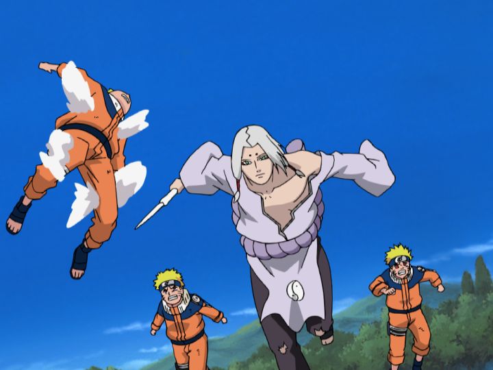 君麻呂の圧倒的力を前に苦戦するナルト。