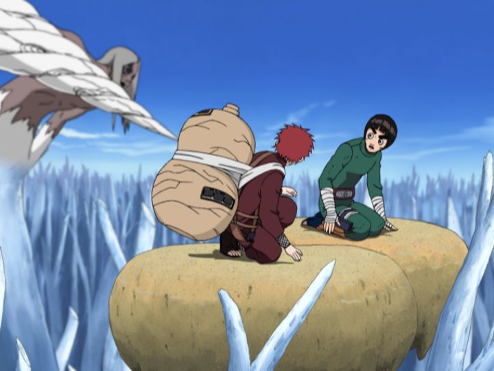 シカマルの元にテマリ、キバの元にカンクロウ、リーの元に我愛羅が救援に駆けつけます!!