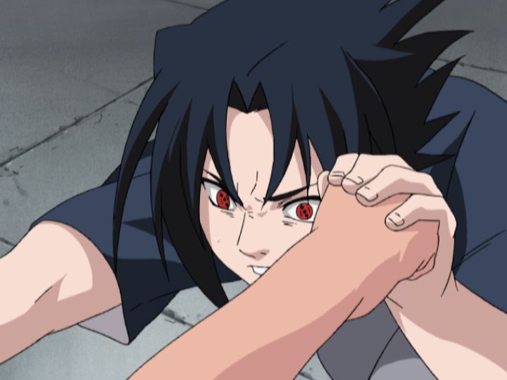 呪印に体が慣れ、力を増した写輪眼によりナルトの動きを完全に見切るサスケ。