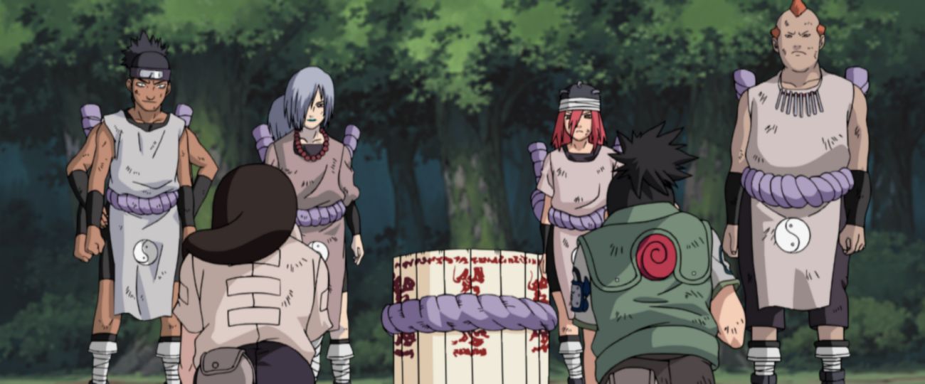 木ノ葉の上忍と交戦した音の四人衆は休息を余儀なくされ、その間にシカマル小隊が追いつきます。