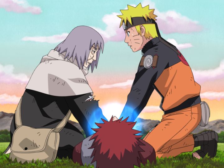 木ノ葉と砂が手を取り合えることを確信したチヨバアは未来を若者たちに託し、自分の命と引き換えに我愛羅を生き返らせます。