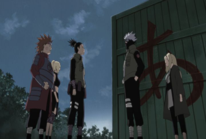 里に帰還したシカマルたちはアスマの戦死を綱手や妻である紅に報告。