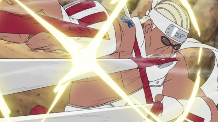 七本の刀を自在に操り、高速かつ変則的な剣術でサスケを追い詰めていくキラービー!