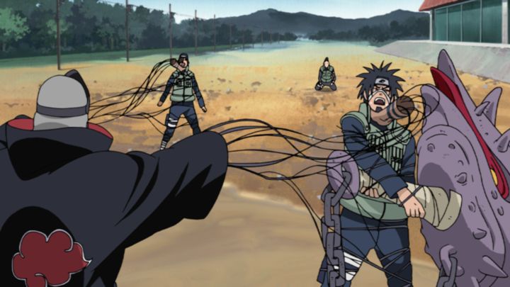 飛段と角都の連携攻撃を止めるため、シカマルは分断の策を立案。