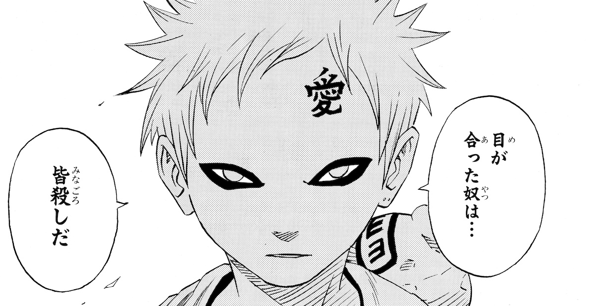 かくいう私も『NARUTO-ナルト』を読んでいた小中学生のときは、我愛羅が一番好きなキャラクターでした。我愛羅の額にある「愛」の文字。それをマジックペンで自分の額に書いたこともありました。