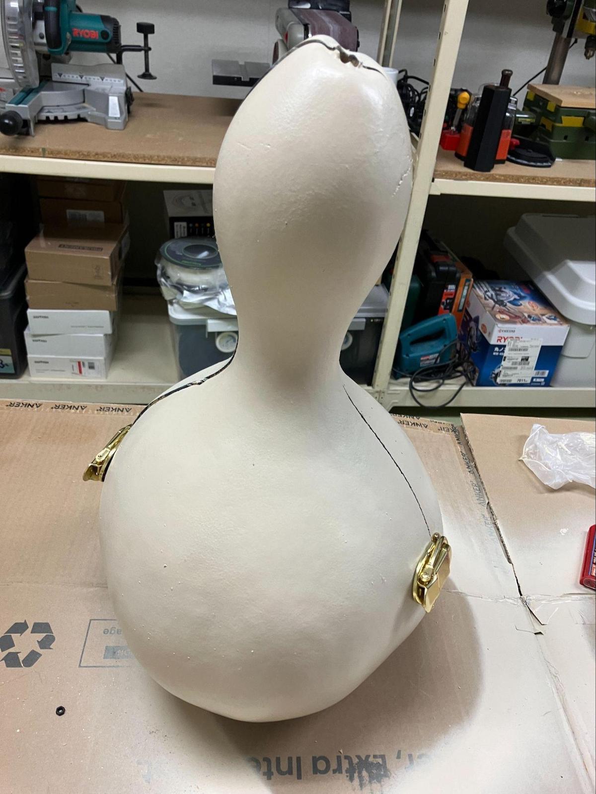 我愛羅のマジひょうたんに比べるとだいぶ小ぶりになってしまいましたが、これがリアルで作れる限界でした。我愛羅のひょうたんレベルの大きなひょうたんはあるにはあるのですが、できあがったらニュースになるくらい希少価値が高いようで、私には手が届きませんでした……。残念。