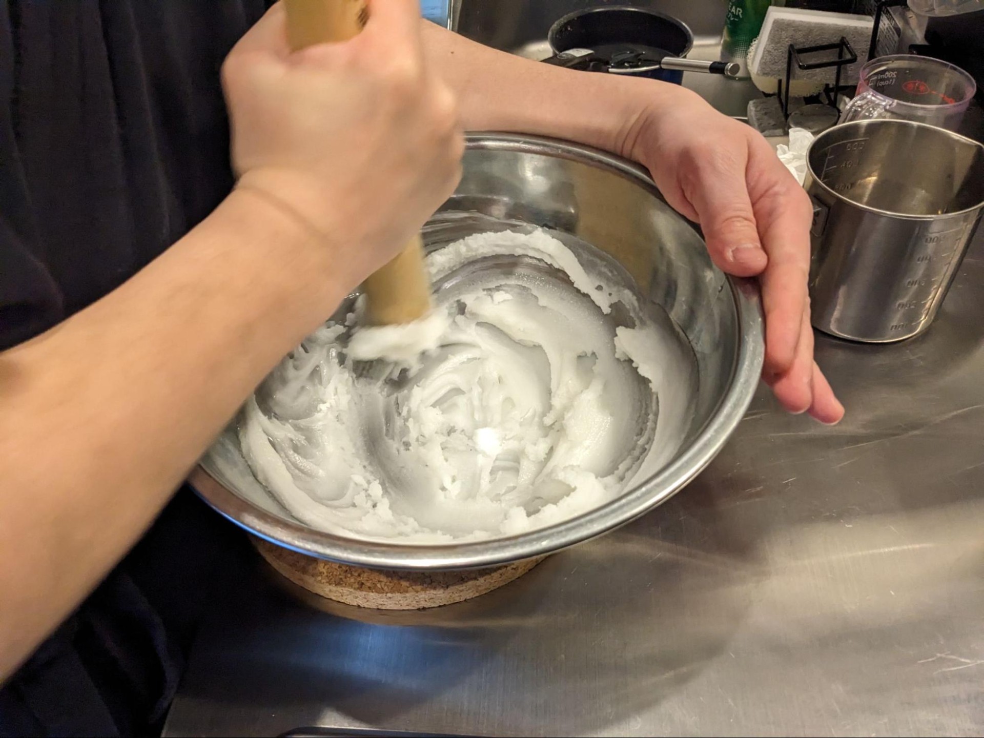 すり蜜は水を少量加え適度に加熱するとまた柔らかくなりますが、すぐに固まるので扱いが難しいですね。予習しなかったことを後悔しています。