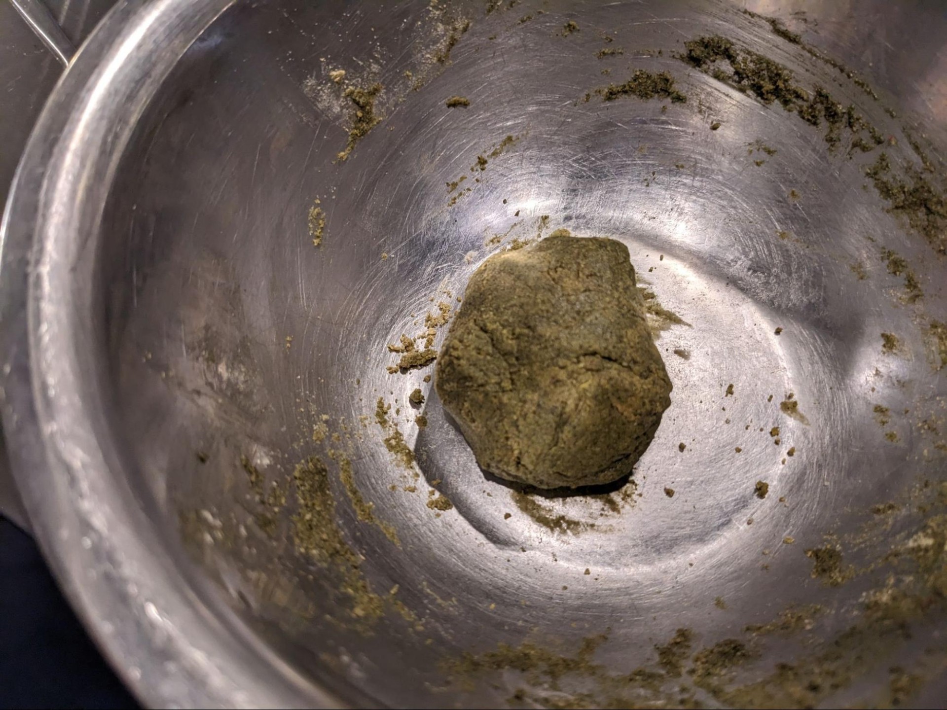 現状、粉をラードと蜂蜜で練っただけなので、ベタベタで柔らかいお好み焼きの味がする最悪ななにかです(冷蔵庫で冷やすとこの後の作業がしやすいと思います)。