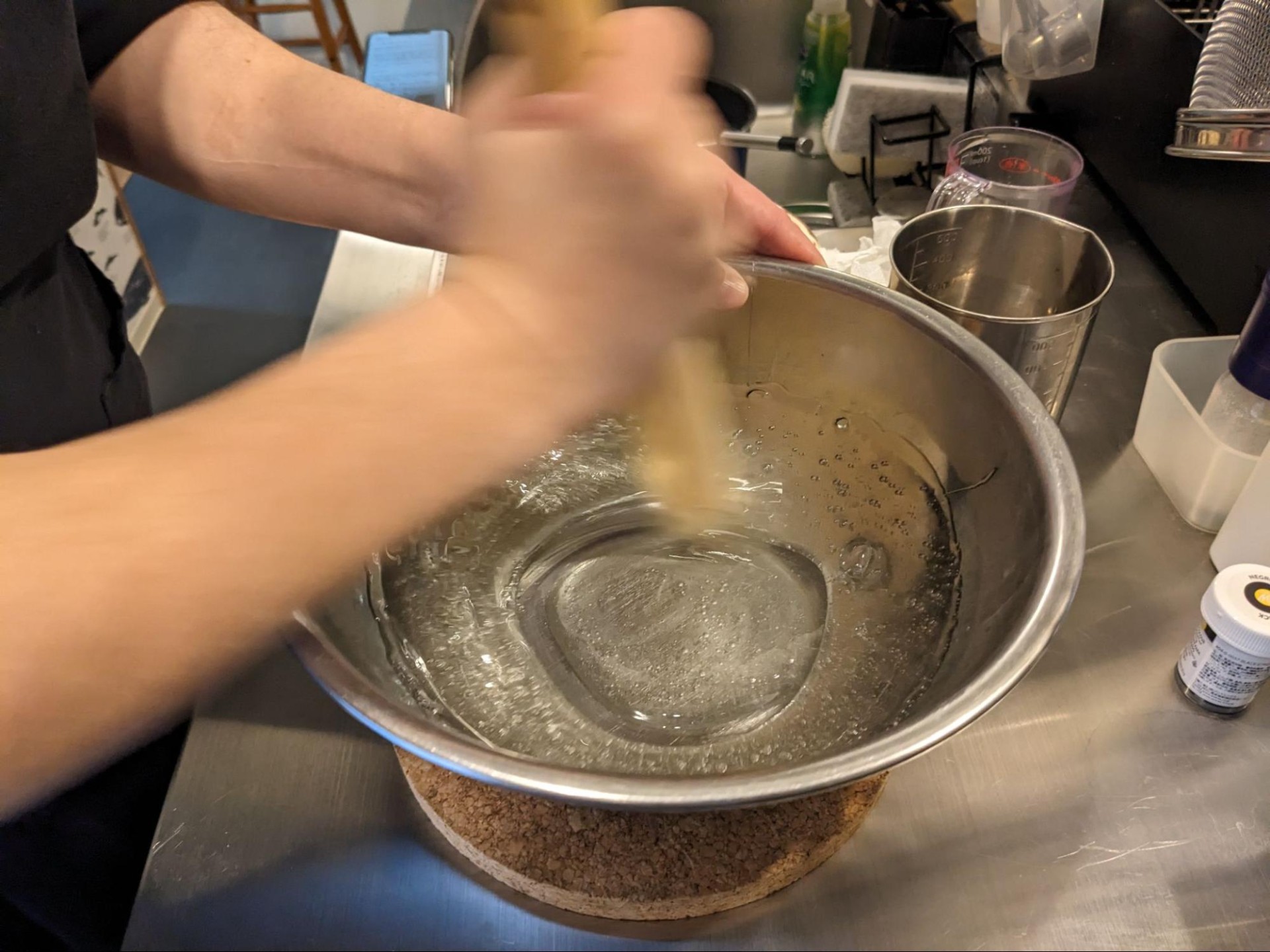 しかるのちこれを混ぜながら温度を下げていくと、、