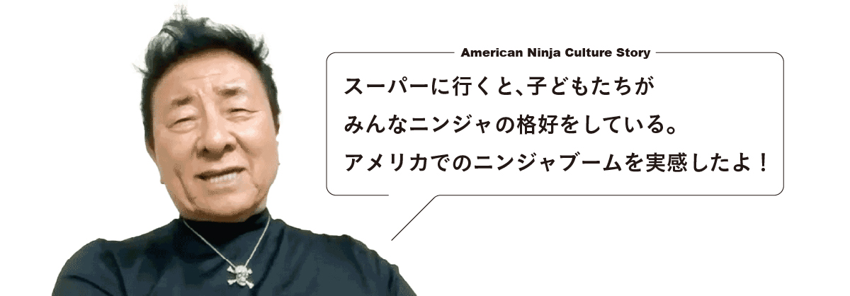 ショー:そうですね。僕の会社で作ったニンジャ衣装がハロウィンのコスチュームとして飛ぶように売れましたし、ゴム製の手裏剣のおもちゃも大人気でした。全米のあちこちの街にニンジャ道場ができたり、ニンジャカルチャーを伝える雑誌がいくつも創刊されたり、良くも悪くもニンジャがアメリカ社会に浸透していき、やがてニンジャは誰もが知る単語になりました。