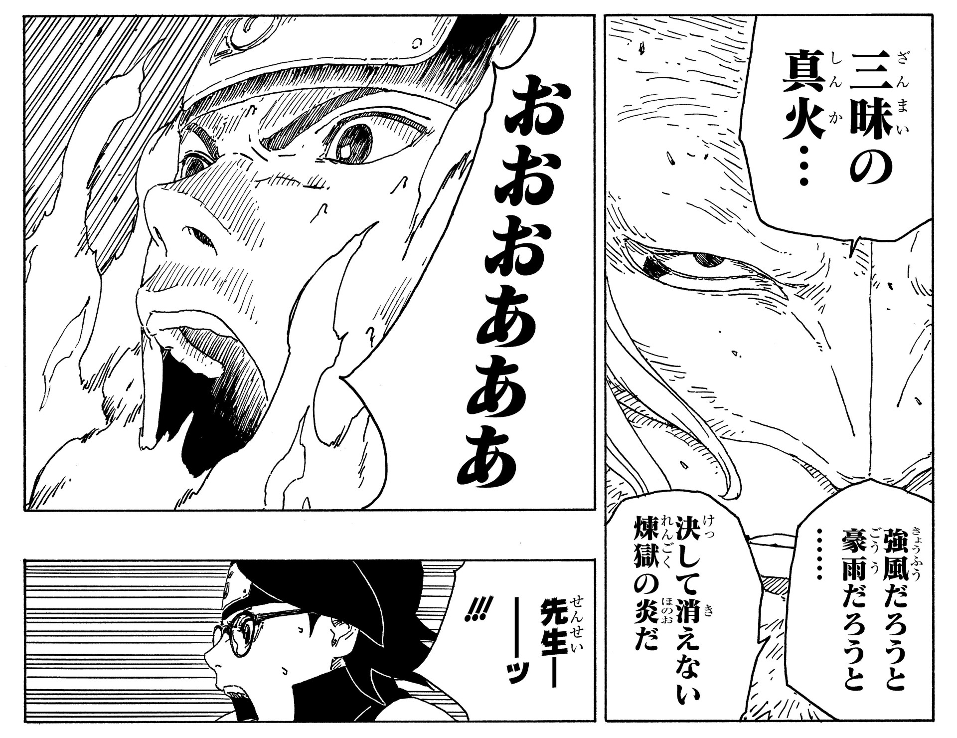 その脅威の力で上忍・木ノ葉丸を圧倒し、その身を焼き尽くそうとします。