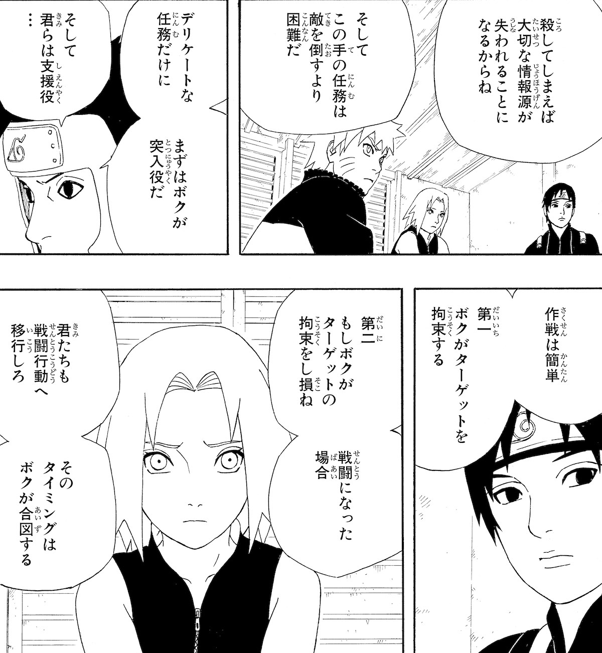 例えば、サスケ奪還任務の際にはファイブマンセル(5人1組)のチームを率いるシカマルが、具体的な作戦や個々のメンバーの役割を決めていましたね。あれも、リアルな戦場における特殊部隊の姿に近いです。