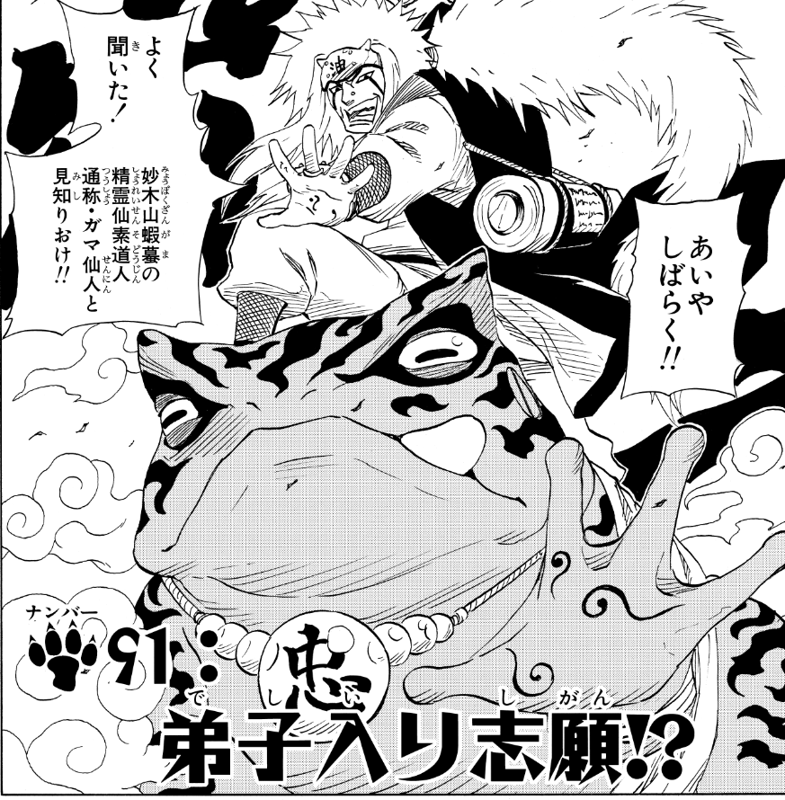 そしてナルトは正式に自来也へ弟子入りし、約3年間の修業に出ます。