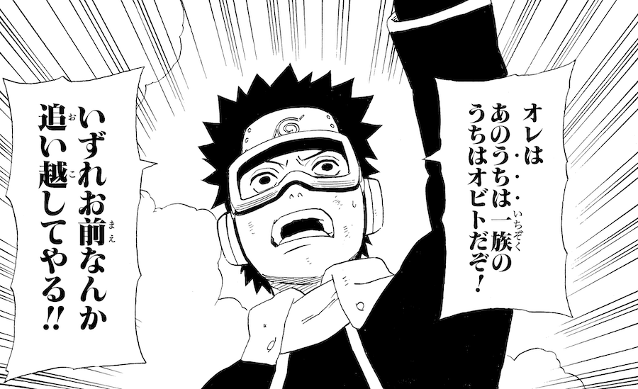 ライバルであるカカシは自分よりずっと先に上忍に昇格。オビトの片想い相手であるリンは、そんなカカシに好意を寄せていました。オビトはカカシに対抗心を燃やしながら、「口先だけの落ちこぼれ」である自分に、情けなさを感じていました。