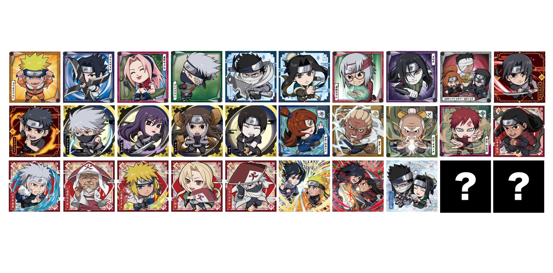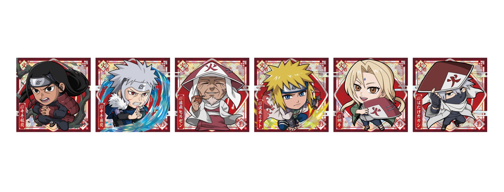 アニメで登場している六代目火影のカカシまでを、ホロ加工のキラキラ仕様で収録。