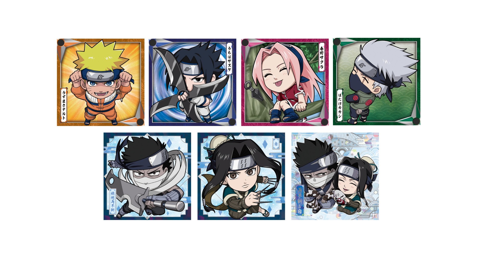 第3弾では、少年篇の波の国編から第七班をノーマルシール、再不斬、白をスーパーレアで収録!