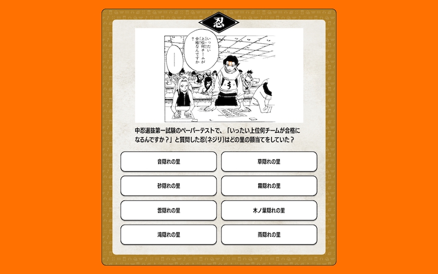 引き続き「忍界クイズ NARUTOMANIA」をお楽しみください!