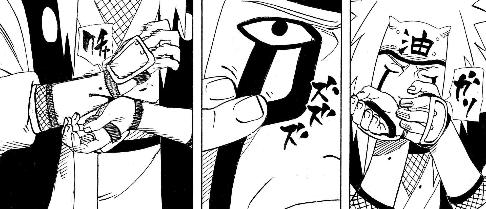 自来也の隈はこの筋隈に似ているので、 自分の顔の模様を増やしてパワーアップにつなげているんでしょうね。
