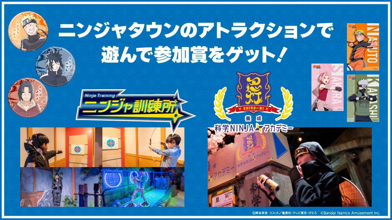 イベント期間中にニンジャタウンの常設アトラクションで遊ぶとオリジナルノベルティがもらえるぞ!