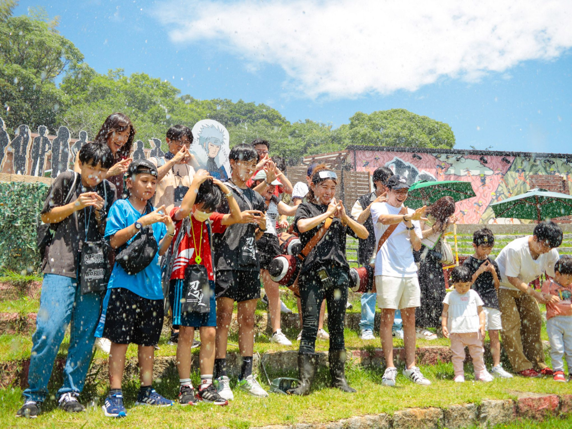 成功すれば、約50Lの水しぶきが吹き上がり、まるで参加者自身が忍となって忍術を発動させるリアル忍術体験を楽しむことができます。さらに、忍術成功の記念品として「NARUTO&BORUTO 忍里」オリジナルの水遁祭ステッカーをプレゼント!