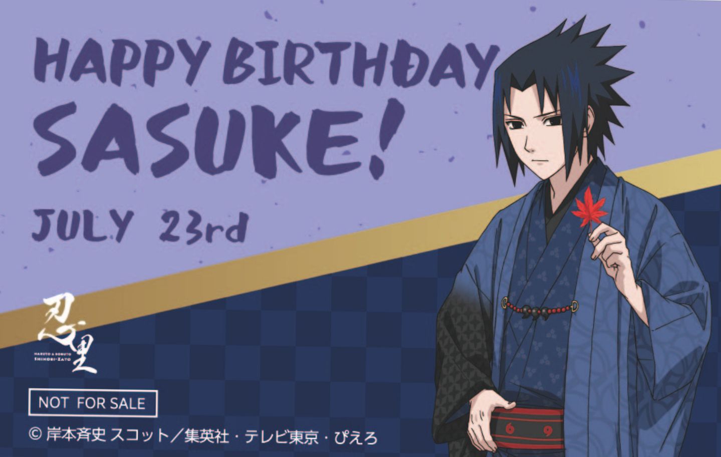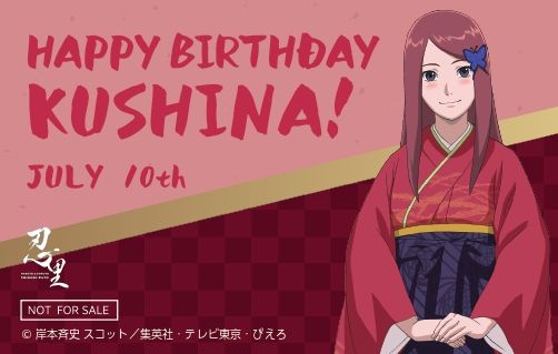 本イベントでは、これまでに忍里でイベントを行ってきたキャラクターたちの誕生日をお祝いする、忍里オリジナルのバースデーカードをご用意いたします。7月は、今回初登場となる、うずまきクシナをはじめ、うちはサスケ、日向ネジ、犬塚キバ、ミツキをお祝いします!