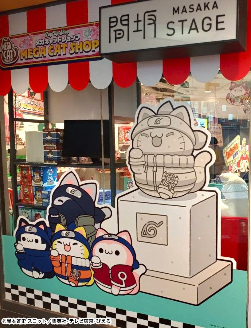 また、SHOPでは『NARUTO』のキャラクターがニャンコ化した「ニャルト!」の歴代商品に加え、イベント限定商品「NARUTO-ナルト- 疾風伝 おでかけニャルト! 2025 LIMITED Ver.」や、「MEGA CAT SHOP」限定品のハンドタオル、アクリルステッカー、BIGステッカーを販売しています。