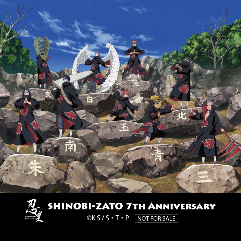 デザインは“7周年”に合わせた「第七班(NARUTO-ナルト-)」と「第七班(BORUTO-ボルト- NARUTO NEXT GENERATIONS)」に加え、「尾獣」、「暁」の全4種類をご用意しており、ランダムでお渡しいたします。